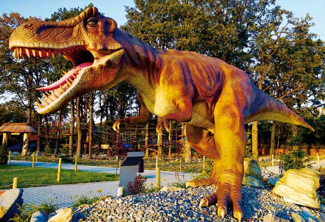 O prymat wśród najbardziej popularnych parków tematycznych z powodzeniem walczą parki dinozaurów. Ekspozycji ogromnych prehistorycznych gadów oczywiście w województwie śląskim nie brakuje. W Rybniku takim parkiem tematycznym jest Rodzinny Park Atrakcji. Na 10-hektarowym terenie całe rodziny mogą podziwiać nie tylko majestatyczne sylwetki dinozaurów, ale też postacie z bajek i baśni. Na dzieci spragnione zabawy czeka plac zabaw, urządzenia lunaparkowe, jest też kręgielnia, megaszachy i hobby golf. Dużo do zaoferowania ma Dream Park w Ochabach. Tutaj mieszkają ruchome i ryczące gady z epoki jury i kredy. Jedną z najciekawszych atrakcji jest z pewnością pierwsze w Europie Oceanarium Prehistoryczne, umożliwiające poznanie pradawnego świata podwodnych stworzeń. W olbrzymich akwariach można też podziwiać okazy 100 gatunków żywych ryb tropikalnych. W trosce o to, by zwiedzający Dream Park się nie nudzili, przygotowano nowości, m.in. dom „do góry nogami”. Podobno wizyta w tej niecodziennej konstrukcji sprawi, że nasz błędnik kompletnie zwariuje! Na dodatkowe wrażenie można też liczyć w Parku Dinozaurów w Ustroniu. Tutaj zobaczyć można gady wyglądające niczym żywe. Wszystkie one wydają dźwięki, ruszają się, oddychają, a nawet otwierają i zamykają oczy. W tym roku w parku pojawią się 3 dinozaury chodzące!