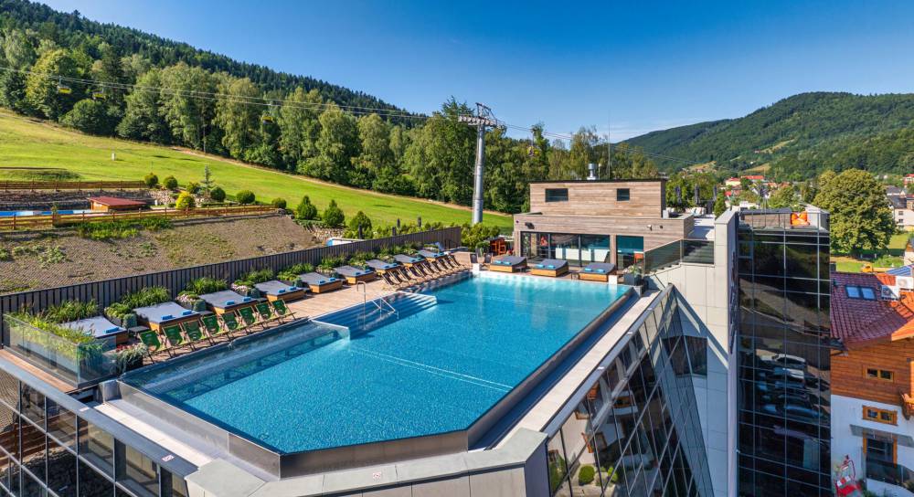 Hotel w 2022 roku przeszedł kapitalny remont części hotelowej i Centrum Biznesowego wraz z rozbudową o luksusowe apartamenty, Centrum Kongresowe, restaurację META Thai & Sushi, siłownię, Strefę Wellness oraz niepowtarzalne, widokowe tarasy Green Garden z basenem na dachu. Nasz obiekt jest położony bezpośrednio przy stoku narciarskim z wyciągiem.