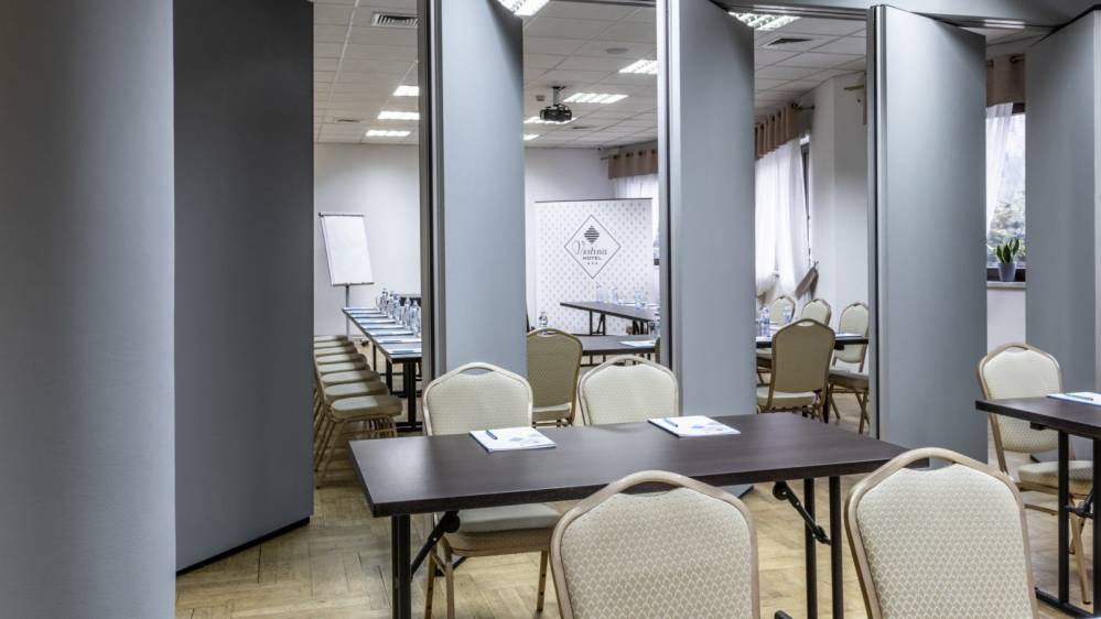 Hotel Vestina położony w Wiśle-Malince oddaje do dyspozycji dużą 200-metrową salę. Sala posiada przesuwne ściany mobilne, w razie konieczności można ją wydzielić na dwie mniejsze przestrzenie pod szkolenia. Sala znajduje się tuż obok restauracji, w której serwujemy słodką przerwę kawową. Posiadamy profesjonalne nagłośnienie, ekran pod rzutnik oraz flipchart – wszystkie niezbędne rzeczy potrzebne do organizacji szkolenia. Salę możemy przygotować wedle wytycznych: w układzie teatralnym, szkolnym, kameralnym lub w kształcie litery U.