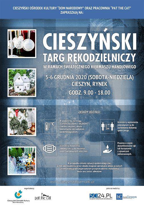 5 i 6 grudnia na Rynku w Cieszynie odbędzie się Cieszyński Targ Rękodzielniczy rozpoczynający Świąteczny Kiermasz Handlowy. Ze względu na pandemię koronawirusa, a także związane z nią obostrzenia wprowadzone rozporządzeniem Rady Ministrów, w tym roku atrakcje kulturalne towarzyszące Jarmarkowi św. Mikołaja zostaną zrealizowane online (szczegóły można znaleźć na stronie i profilu Domu Narodowego). Jednak na cieszyńskim Rynku pozostanie część handlowa - czyli targowisko, na którym tradycyjnie zaprezentują się twórcy i pracownie rękodzieła artystycznego! Po raz kolejny będzie można zaopatrzyć się w oryginalne prezenty, biżuterię artystyczną, bibeloty, przedmioty użytku codziennego oraz wiele innych!