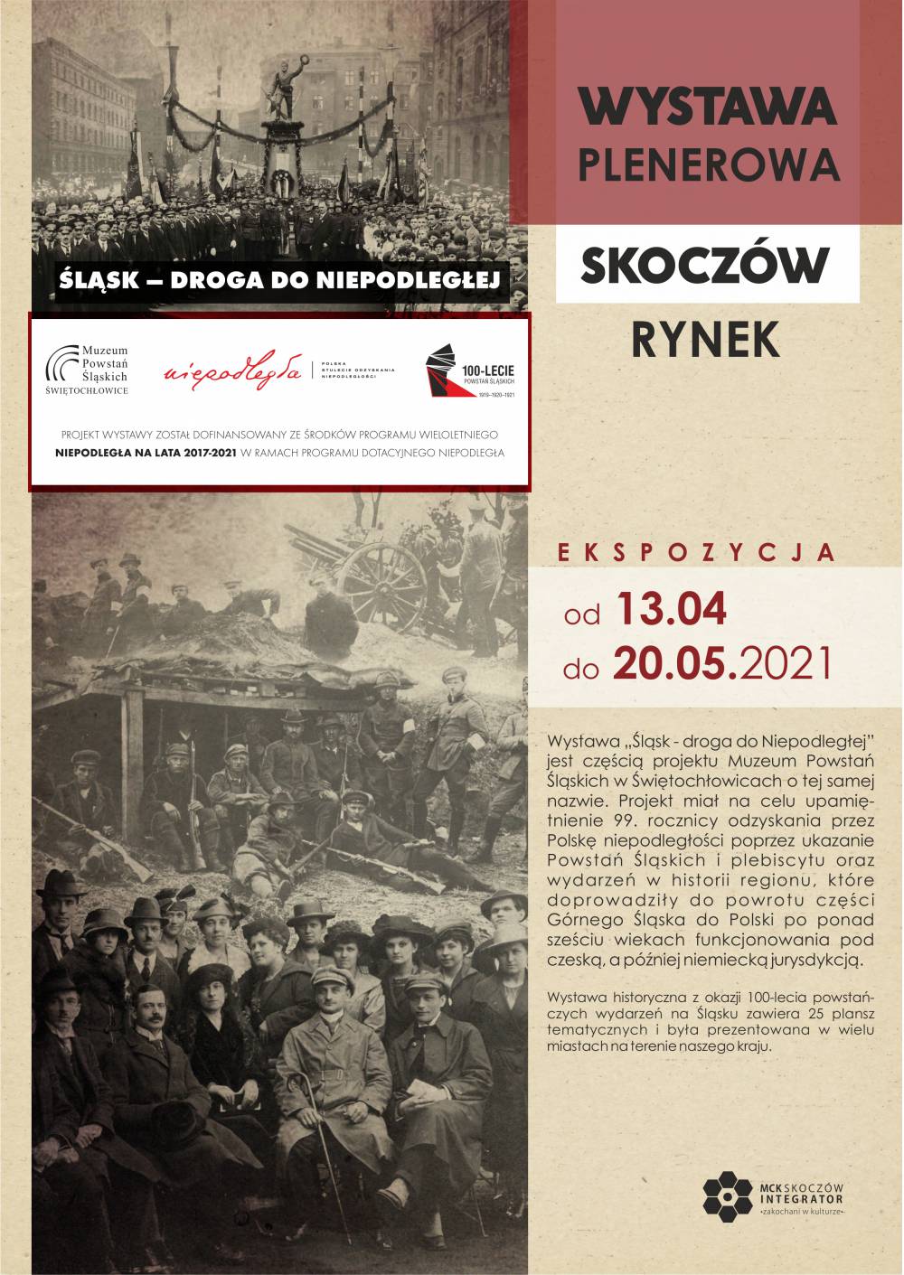 Już od 13.04 do 20.05.2021 r. na skoczowskim rynku można obejrzeć plenerową wystawę "Śląsk - droga do Niepodległej", która jest częścią projektu Muzeum Powstań Śląskich w Świętochłowicach o tej samej nazwie.