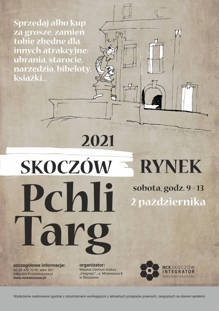 Już 2 października 2021 roku, w godzinach od 9.00 do 13.00 Miejskie Centrum Kultury „Integrator” zaprasza kolekcjonerów antyków i miłośników staroci na ostatnią tegoroczną edycję Pchlego Targu, która odbędzie się tradycyjnie, na skoczowskim rynku.