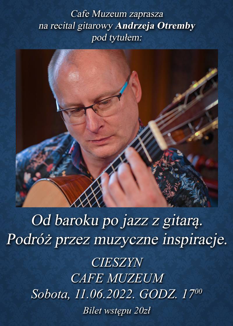 Cafe Muzeum zaprasza 11 czerwca na godz. 17.00, na recital gitarowy Andrzeja Otremby "Od baroku po jazz z gitarą. Podróż przez muzyczne inspiracje"