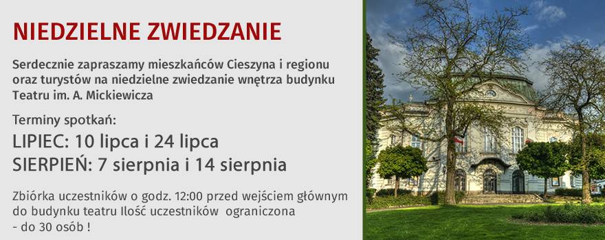 Serdecznie zapraszamy mieszkańców Cieszyna i regionu oraz turystów na niedzielne zwiedzanie wnętrza budynku Teatru im. A. Mickiewicza.