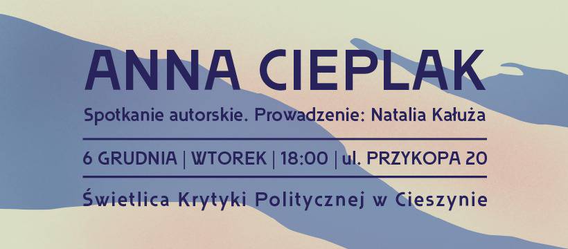 Zapraszamy 6 grudnia o godz. 18:00, na spotkanie autorskie z Anną Cieplak do Świetlica Krytyki Politycznej w Cieszynie.