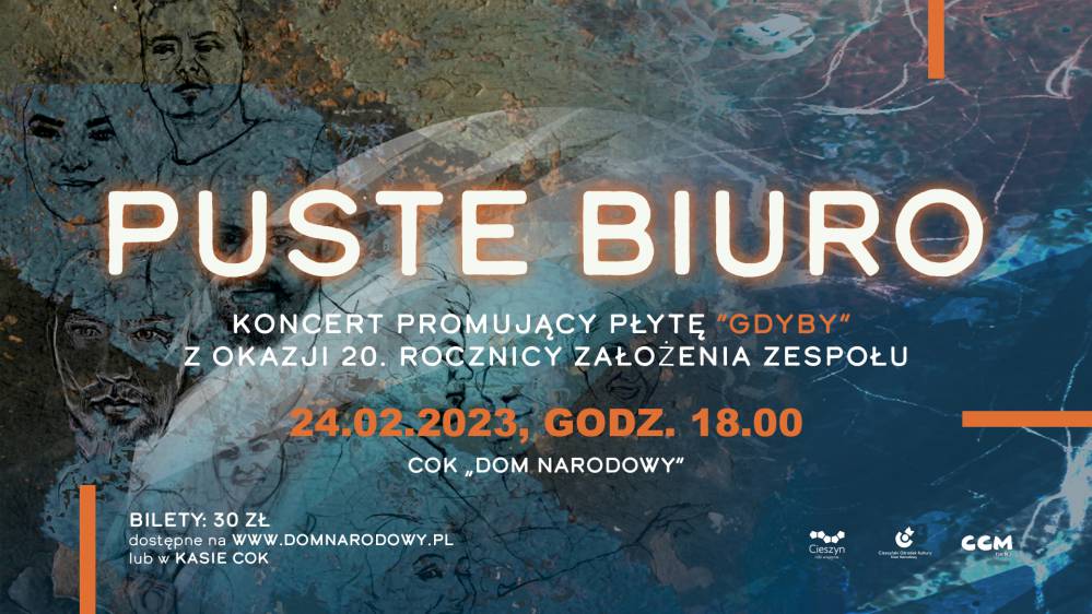 Cieszyński Ośrodek Kultury "Dom Nardowoy" zaprasza na koncert zespołu Puste Biuro! Muzycy aktualnie promują nową płytę pt. "Gdyby" wydaną z okazji 20. rocznicy zespołu. Wydarzenie odbędzie się w piątek 24 lutego o godzinie 18:00 w sali widowiskowej Domu Narodowego w Cieszynie.
