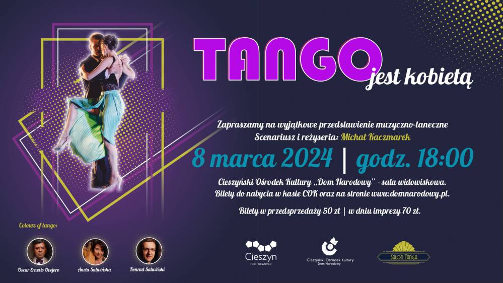 Wydarzenie pt. "Tango jest kobietą" odbędzie się w Dzień Kobiet, w piątek 8 marca o godzinie 18:00 w sali widowiskowej Domu Narodowego w Cieszynie.