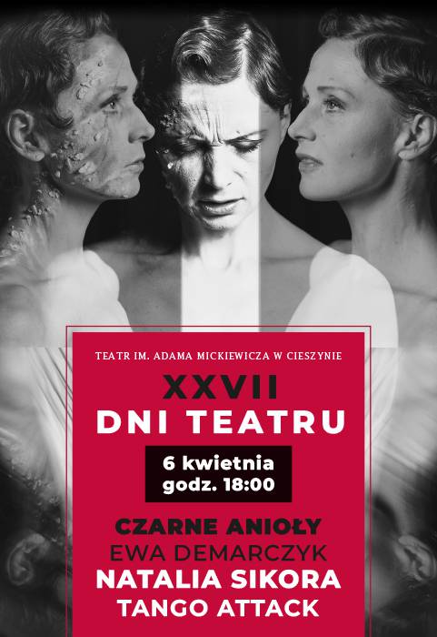 Zapraszamy w sobotę, 06 kwietnia 2024, na godzinę 18:00 do Teatru im. A. Mickiewicza w Cieszynie na spektakl "CZARNE ANIOŁY - Ewa Demarczyk - Natalia Sikora - Tango Attack" w ramach XXVII DNI TEATRU.