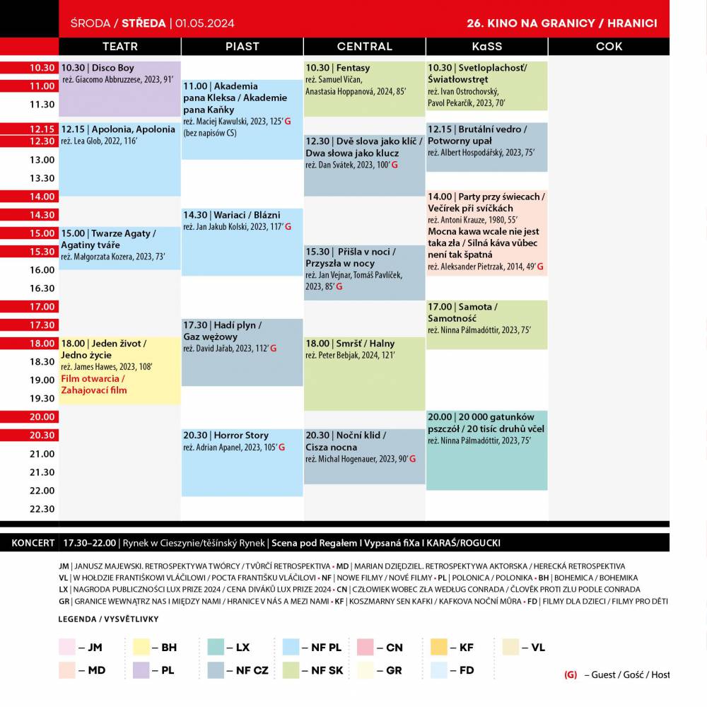 OTO KALENDARZ PROJEKCJI 26.KINA NA GRANICY/HRANICI!