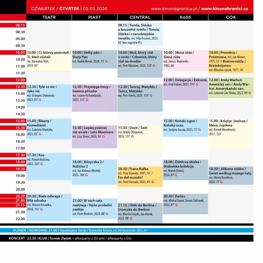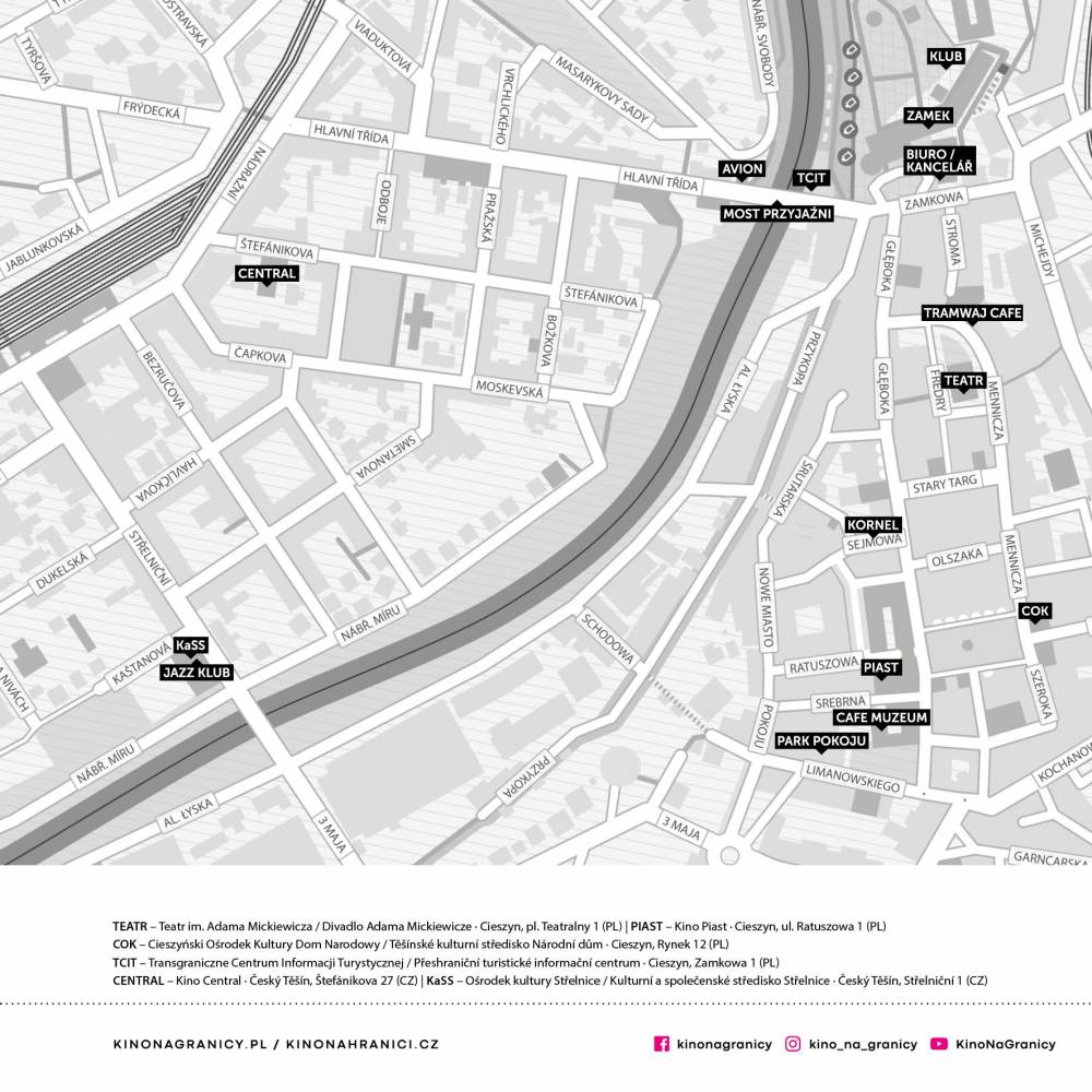 Kino Na Granicy / Kino Na Hranici to największy przegląd filmów z Polski, Czech i Słowacji - jedyne wydarzenie filmowe, które już od ponad dwóch dekad odbywa się w jednym mieście, ale po dwóch stronach granicy – w polskim i czeskim Cieszynie.