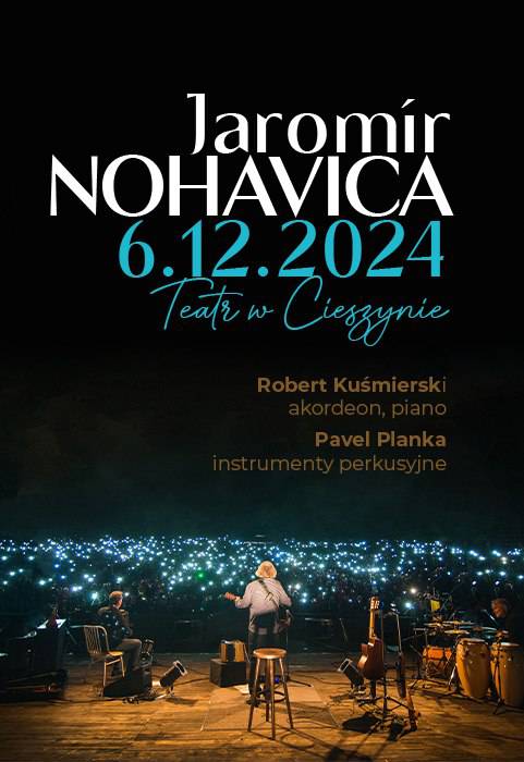 Zapraszamy 06 grudnia 2024, do Teatru im. A. Mickiewicza w Cieszynie na koncert: Jaromir Nohavica, Robert Kuśmierski - akordeon, piano, Pavel Planka - instrumenty perkusyjne.