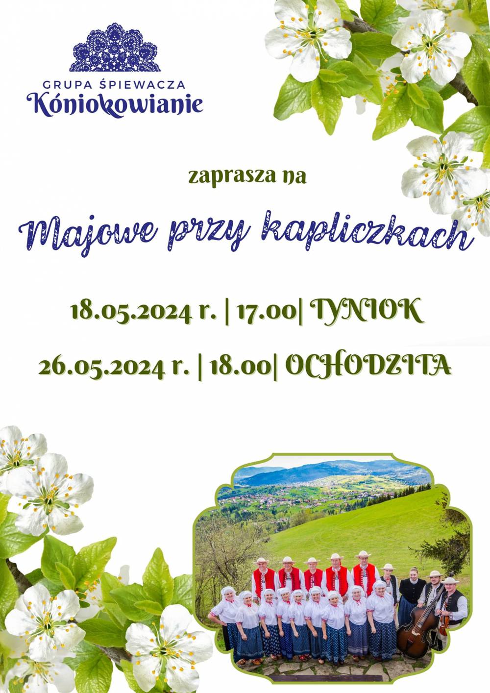 W Trojwsi tradycja śpiewania nabożeństw majowych przy kapliczkach i krzyżach jest wciąż żywa, a od kilku lat kontynuuje ją Grupa śpiewacza "Kóniokowianie". Także i w tym roku śpiewy na cześć Królowej Gór nieść się będą z naszych najwyższych szczytów - Ochodzitej i Tynioka. Grupa zaprasza wszystkich do udziału i włączenia się we wspólną modlitwę i śpiew. Mamy nadzieję, że pogoda dopisze i spotkamy się w jak najliczniejszym gronie!