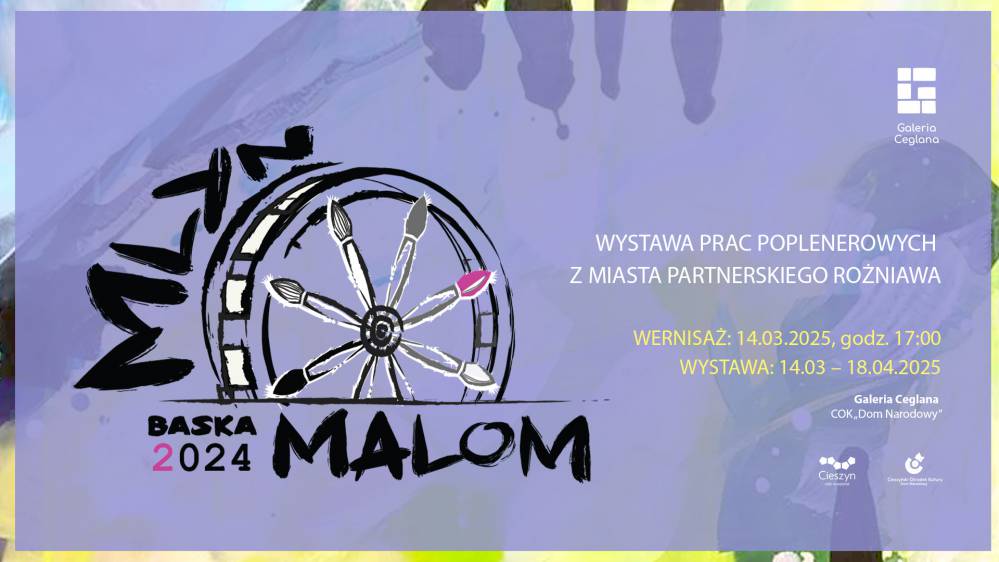 Cieszyński Ośrodek Kultury "Dom Narodowy" zaprasza na wernisaż wystawy partnerskiej "MŁYN" Rožňava 2024, podsumowującej Międzynarodowy Obóz Malarski, który odbył się w sierpniu 2023 roku w Rožňavie, mieście partnerskim Cieszyna. Wernisaż wystawy odbędzie się w piątek, 14 marca 2024 o godzinie 17:00 w Galerii Ceglanej na parterze Domu Narodowego w Cieszynie, ekspozycja będzie czynna do 18 kwietnia 2025.