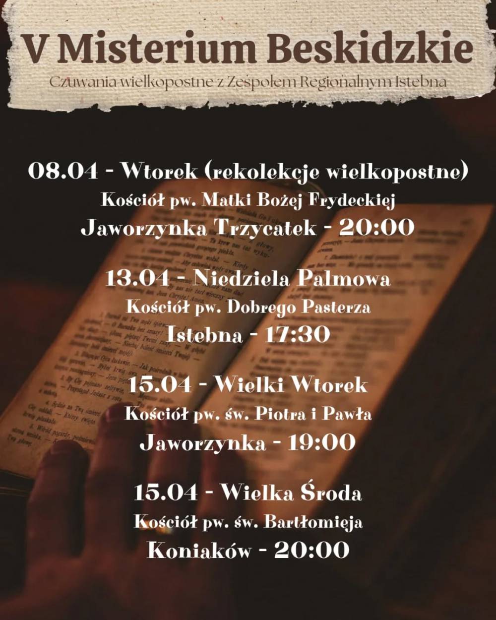 Zespół Regionalny Istebna serdecznie zaprasza na czuwania wielkopostne - V Misterium Beskidzkie.