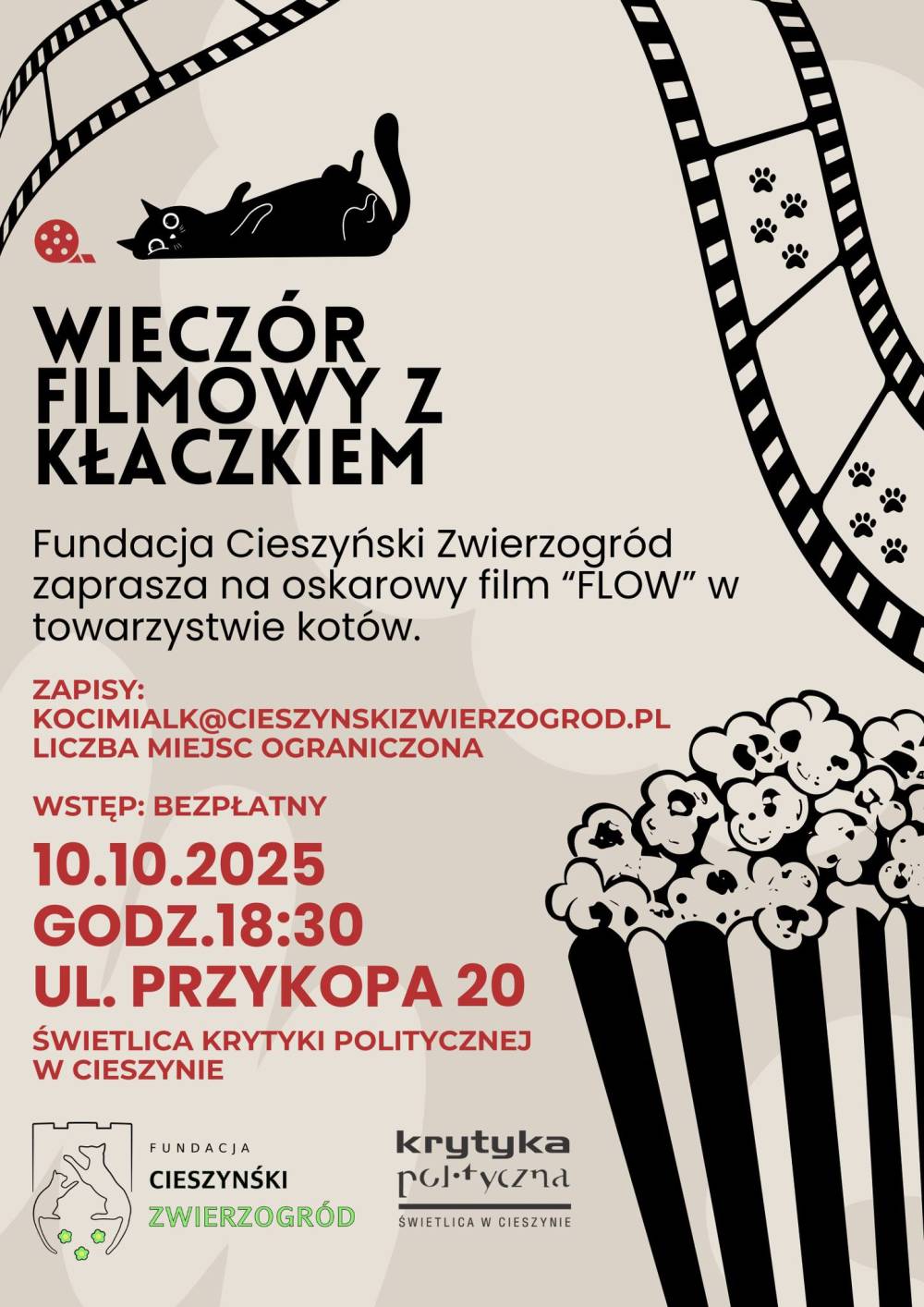 Świetlica Krytyki Politycznej w Cieszynie wspólnie z Fundacja Cieszyński Zwierzogród serdecznie zapraszamy na cykl pokazów filmowych z kłaczkiem!