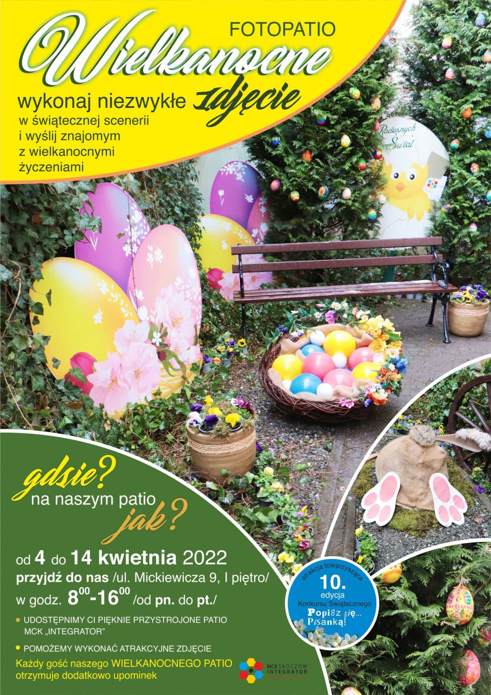 MCK „Integrator” zaprasza do tego magicznego miejsca w terminie od 4 do 14 kwietnia (z wyjątkiem soboty i niedzieli) w godzinach 8.00 - 16.00. To okazja, by w świątecznej scenerii zrobić sobie zdjęcie, które później można wysłać wraz z życzeniami do znajomych. Będzie to niezwykle kolorowa i radosna pocztówka ze Skoczowa!