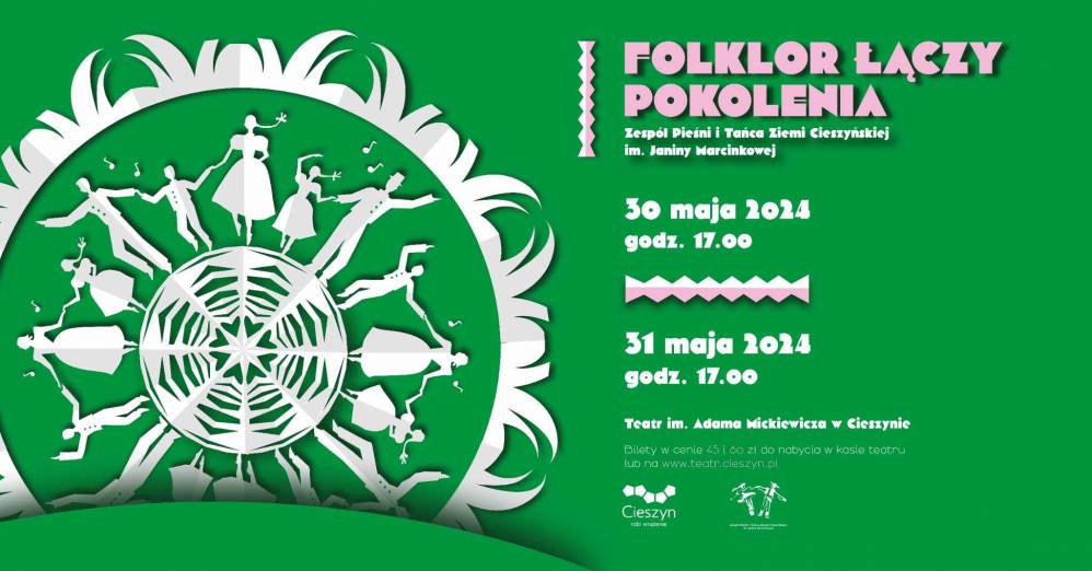 Już 30 i 31 maja 2024r. zapraszamy na Koncerty Zespołu Pieśni i Tańca Ziemi Cieszyńskiej: FOLKLOR ŁĄCZY POKOLENIA.