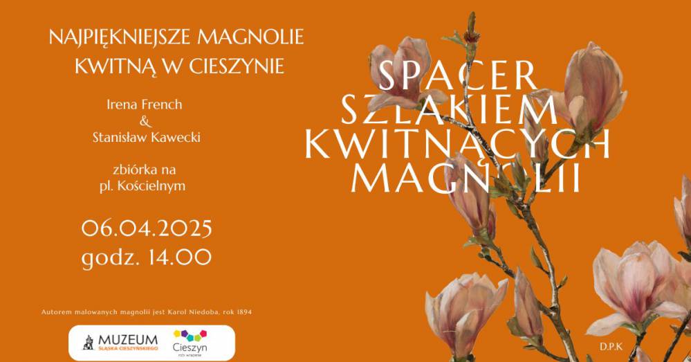 Serdecznie zapraszamy w niedzielę, 06 kwietnia 2025r .do Cieszyna wszystkich miłośników przyrody i historii na SPACERY SZLAKIEM KWITNĄCYCH MAGNOLII. To wyjątkowa okazja, aby podziwiać piękno kwitnących magnolii w malowniczym Cieszynie, a jednocześnie poznać bogatą historię miasta.