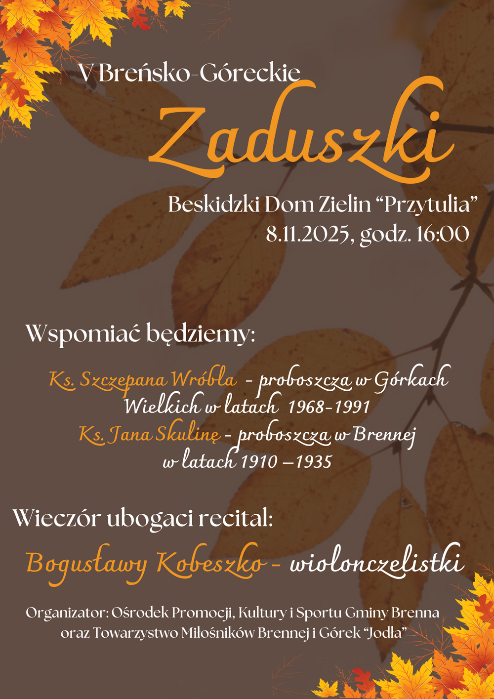 Beskidzki Dom Zielin "Przytulia" wraz z Towarzystwem Miłośników Brennej i Górek "Jodła" zaprasza na: V Breńsko-Góreckie Zaduszki poświęcone pamięci Księdza Szczepana Wróbla i Księdza Jana Skuliny.