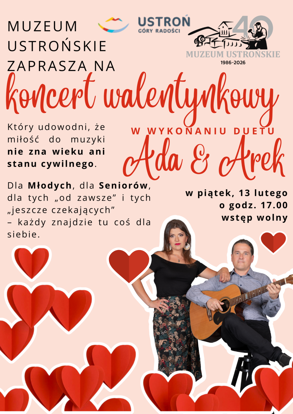 Serdecznie zapraszamy na Koncert Walentynkowy – wyjątkowy wieczór pełen muzyki, emocji i dobrej energii.
