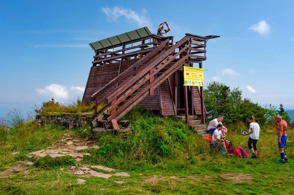 Na polanie szczytowej przebiega granica polsko-słowacka, a charakterystyczny krzyż symbolizuje pojednanie Polski, Czech oraz Słowacji.