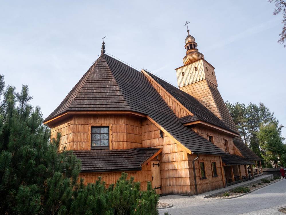 Pierwsza część szlaku jest dość monotonna, bo przez 6km jedzie się cały czas prosto, ale rekompensują to piękne widoki na Beskidy. W mniejsze uliczki zjeżdża się dopiero na wysokości drewnianego kościoła w Kończycach Wielkich, który oddalony jest od szlaku o niecałe 300m. Wraz z kościołem pw. Podwyższenia Krzyża Świętego w Kaczycach znajdują się one na Szlaku Architektury Drewnianej Województwa i są najciekawszymi miejscami opisywanej trasy.