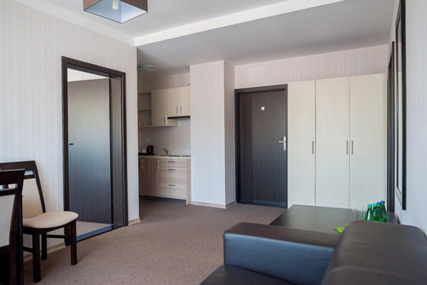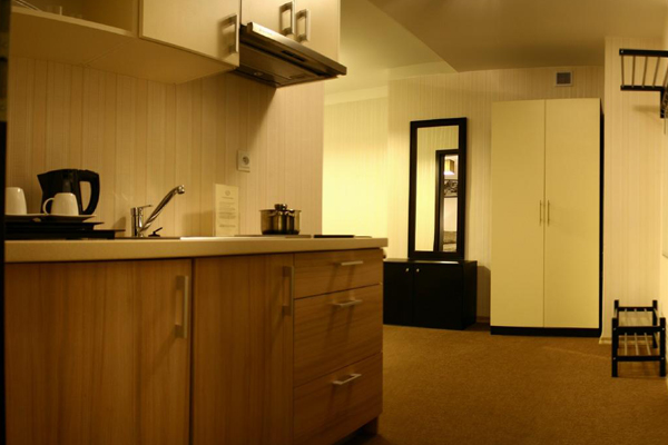 Do dyspozycji jest 80 miejsc noclegowych w nowocześnie wykończonych pokojach, dwu- i trzy-osobowych oraz apartamentach wyposażonych w łazienki z prysznicem, WC i TV satelitarną oraz bezpłatny dostęp do internetu.