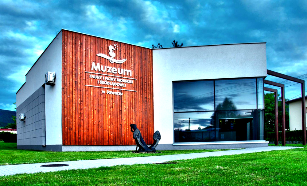 Jaworze, Muzeum Fauny i Flory Morskiej i Śródlądowej fragment budynku, foto muzeum.jaworze.pl