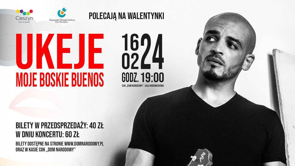 W projekcie MOJE BOSKIE BUENOS Damian Ukeje dzieli się z nami swoimi interpretacjami utworów legendarnego zespołu MAANAM. Koncert odbędzie się w piątek 16 lutego 2024, w sali widowiskowej Domu Narodowego w Cieszynie.