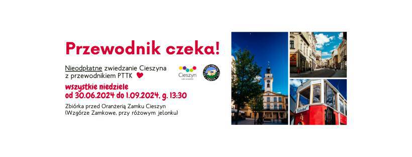Miasto Cieszyn i Koło Przewodników Beskidzkich i Terenowych PTTK "Beskid Śląski" w Cieszynie zapraszają na bezpłatne zwiedzanie miasta z przewodnikiem PTTK z cyklu "Przewodnik czeka"! Spacery odbywają się w każdą niedzielę od 30 czerwca do 1 września 2024, od godz. 13:30