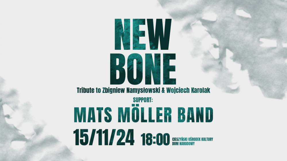 Cieszyński Ośrodek Kultury "Dom Narodowy" i Kulturní a společenské středisko "Střelnice" - Kass zapraszają na koncert zespołu New Bone w ramach Cieszyńskiego Festiwalu Jazzowego. W nowym projekcie zespół New Bone przybliża dokonania legendarnych "gigantów" polskiej sceny jazzowej - Zbigniewa Namysłowskiego i Wojciecha Karolaka. Jako support wystąpi zespół Mats Möller Band.