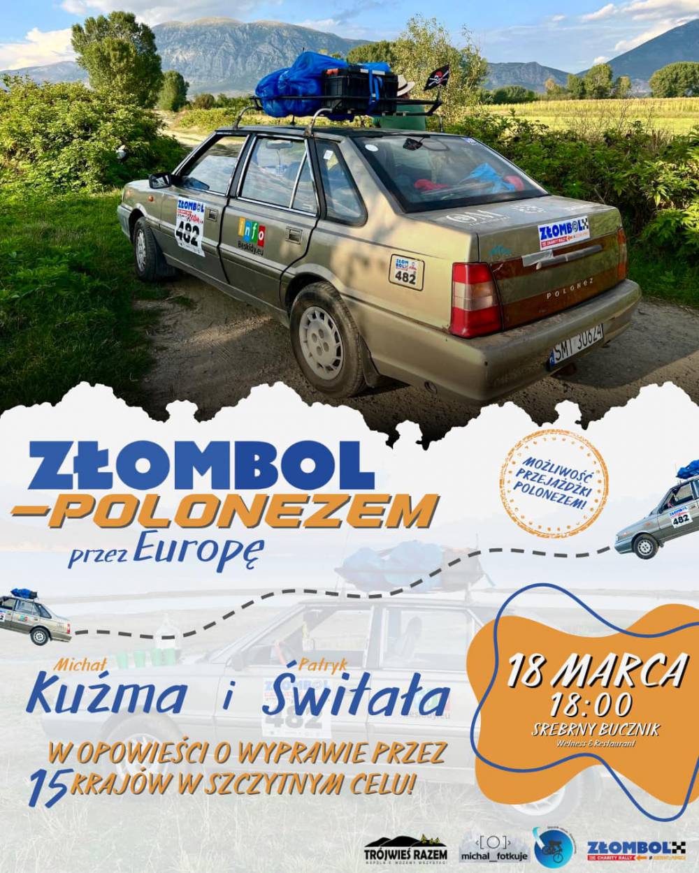 Stowarzyszenie Trójwieś Razem zaprasza na spotkanie podróżnicze "ZŁOMBOL – Starym Polonezem przez Europę", które odbędzie się we wtorek 18 marca o godz. 18.00 w Srebrnym Buczniku.