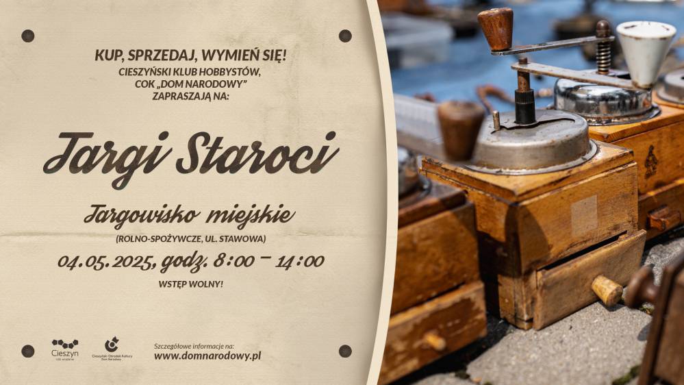 Cieszyński Ośrodek Kultury "Dom Narodowy" i Cieszyński Klub Hobbystów zapraszają na majową odsłonę Targów Staroci! Wydarzenie odbędzie się w pierwszą niedzielę maja, 4.05.2025 r. w godzinach 8.00-14.00 NA TARGOWISKU MIEJSKIM (rolno-spożywczym, ul. Stawowa).