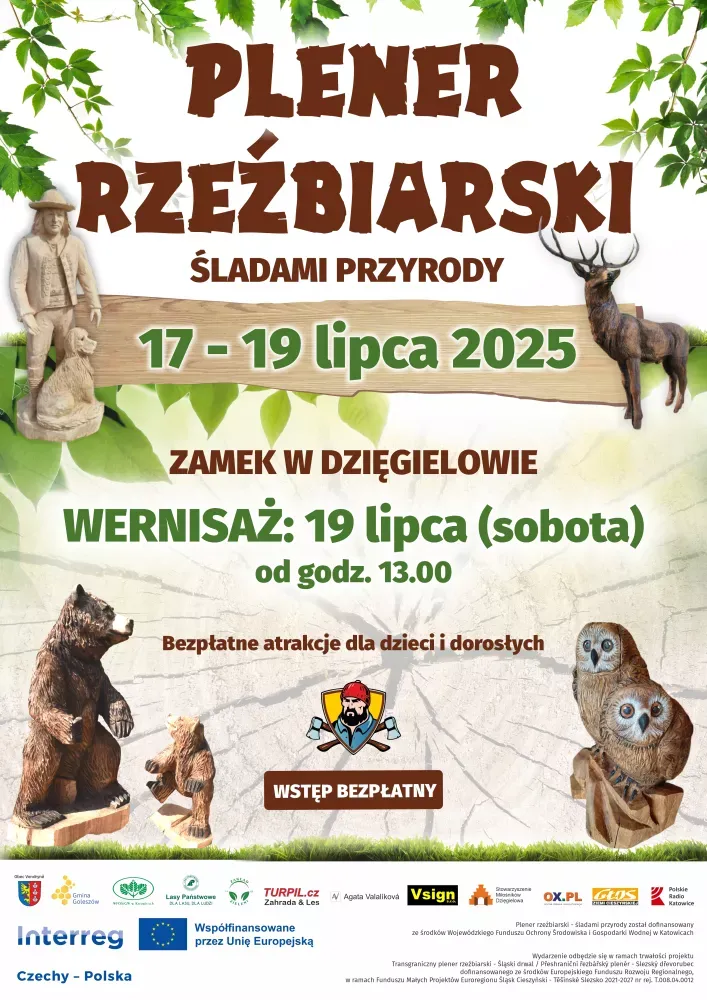 Wójt Gminy Goleszów - Sylwia Cieślar, Starosta Wędryni - Raimund Sikora, a także Gmina Goleszów i Gmina Wędrynia zapraszają na kolejną odsłonę międzynarodowego pleneru rzeźbiarskiego w Dzięgielowie oraz zawodów w rzeźbieniu na czas „Śląski Drwal” w Wędryni. Plener rzeźbiarski będzie miał miejsce na terenie dzięgielowskiego zamku, a jego tematyka skupi się na zwierzętach leśnych.