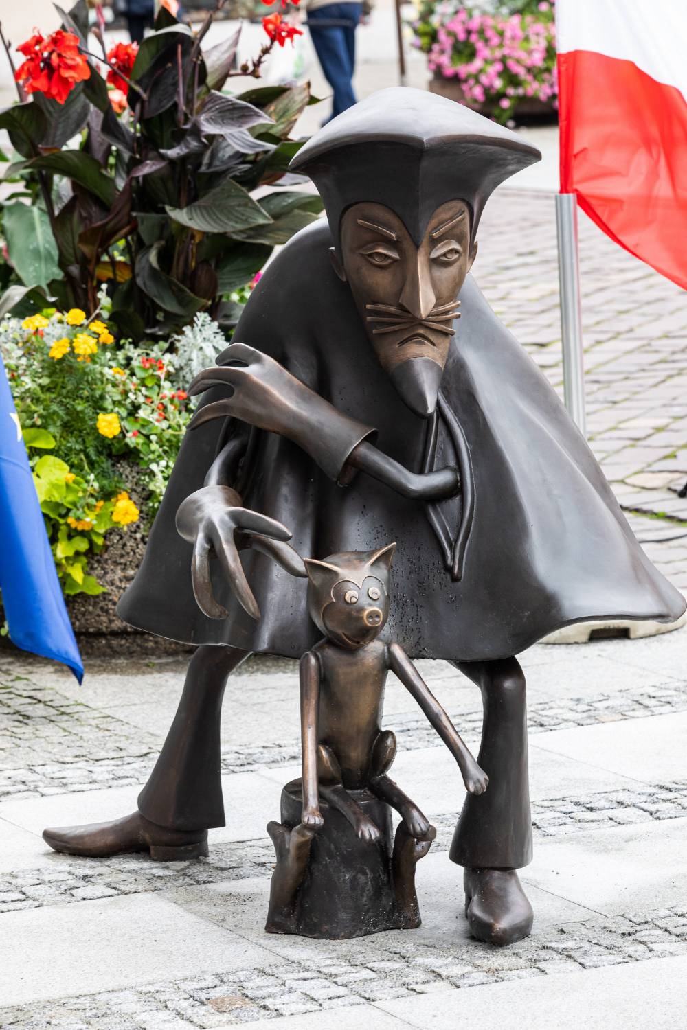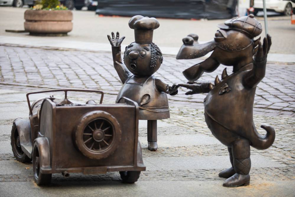 Rzeźba Don Pedro wraz z Mypingiem stoi na ul. 11 Listopada