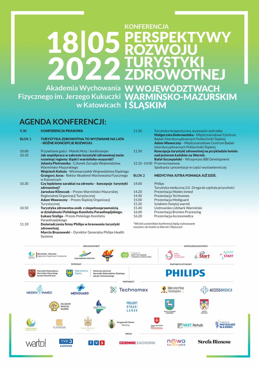 Tematyka konferencji poruszać będzie aspekty związane z rozwojem turystyki zdrowotnej i koncepcji w tym zakresie. Oprócz licznych prezentacji, w ramach progamu konferencji zaplanowano również stanowiska wystawiennicze, na których zaprezentują się podmioty z terenu Warmii i Mazur oraz Województwa Śląskiego. Stanowisko regionu przygotowane zostanie przez Śląską Organizację Turystyczną, gdzie dystrybuowane będą nie tylko materiały turystyczne, ale również związane z potencjałem turystyki uzdrowiskowej i medycznej w województwie.